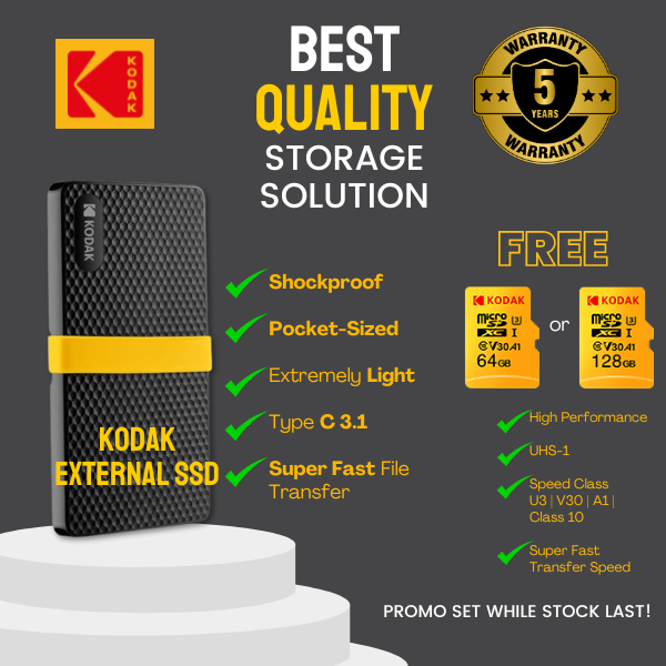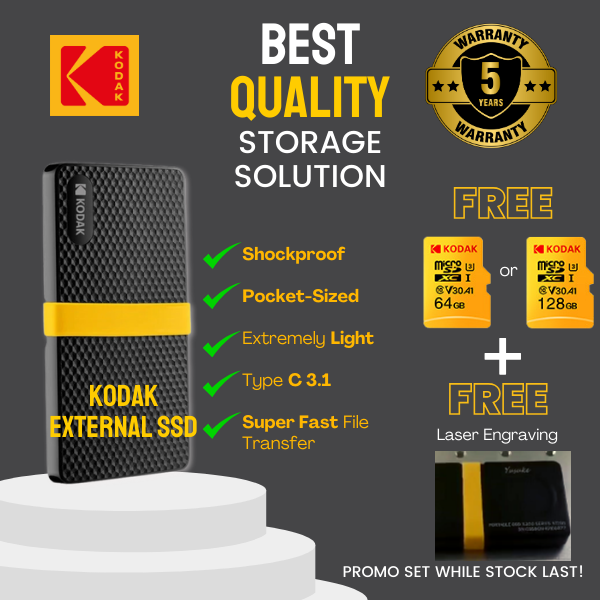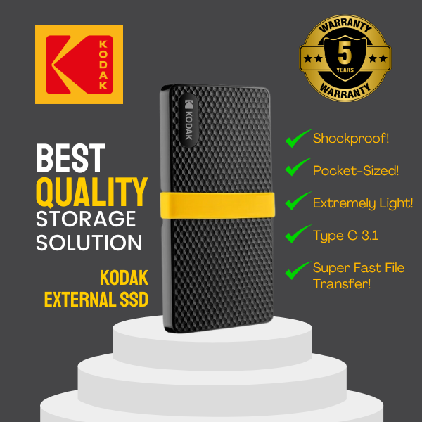 Experience Lightning-Fast External Storage with KODAK Portable SSD – Enjoy your coursework, games or entertainment wherever you go, across any device. Enjoy the freedom of ample storage and rapid transfers to smartphones, laptops, PS5 game consoles, and etc. With its compact, pocket-friendly design, the Kodak High Performance Portable SSD ensures swift speeds and secures your data, simplifying the storage and transfer of large files. Elevate your everyday productivity and enjoyment with the Kodak External SSD